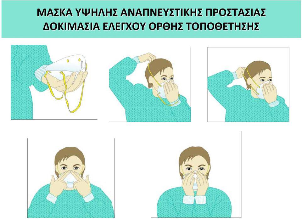 Σε περίπτωση χρήσης μάσκας υψηλής αναπνευστικής προστασίας, ο σωστός τρόπος εφαρμογής της, είναι ο παρακάτω: