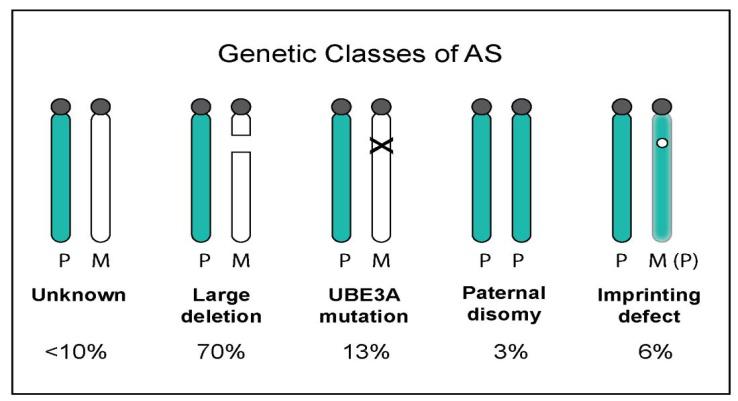 Το σύνδρομο είναι γενετικό. Προκαλείται προβληματική εμφάνιση ενός γονιδίου, του UBE3A, στο χρωμόσωμα 15. Σε κάθε άτομο παρατηρείται εμφάνιση ζευγαριών αντιγεγραμμένων γονιδίων και από τους δύο γονείς, ενώ σε ορισμένα γονίδια μόνο το ένα γονιδιακό αντίγραφο είναι ενεργό. Στο συγκεκριμένο γονίδιο UBE3A κανονικά χρησιμοποιείται μόνο το μητρικό αντίγραφο, αλλά στην περίπτωση του συνδρόμου Angelman το αντίγραφο αυτό είτε είναι ελλιπές είτε ένα μέρος του είναι κατεστραμμένο. Σε κάποιες πιο σπάνιες εμφανίσεις του συνδρόμου, αντί ενός αντιγράφου του γονιδίου από κάθε γονέα, στο άτομο κληροδοτούνται 2 πατρικά αντίγραφα του γονιδίου.