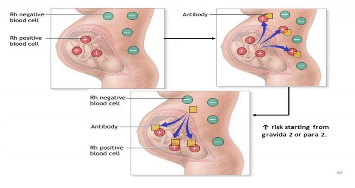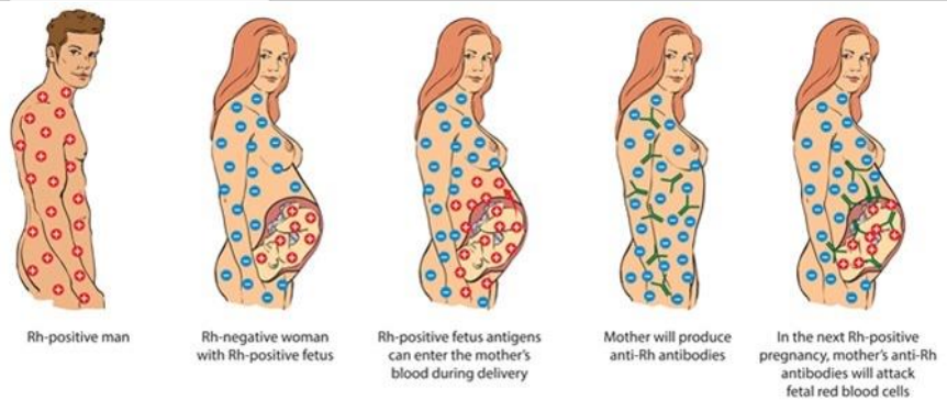 τοκετό η μητέρα αναπτύσσει αντι-Rh αντισώματα επειδή κάποια από τα εμβρυικά ερυθρά αιμοσφαίρια έχουν εισέλθει στη δική της κυκλοφορία αίματος κατά τη διάρκεια του τοκετού. Συνεπώς η πρώτη εγκυμοσύνη μιας γυναίκας με Rh-ασύμβατο έμβρυο δεν έχει επιπλοκές.