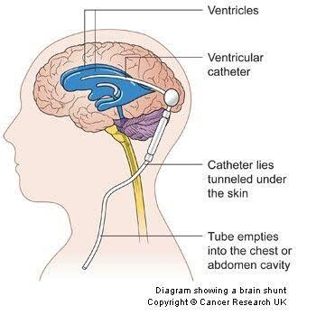 - Βαλβίδα εισάγεται χειρουργικά στον εγκέφαλο και συνδέεται με έναν εύκαμπτο σωλήνα που τοποθετείται κάτω από το δέρμα για να οδηγήσει το υπερβολικό υγρό είτε στην κοιλότητα του θώρακα είτε στην κοιλιά, ώστε να μπορεί να απορροφηθεί από το σώμα.